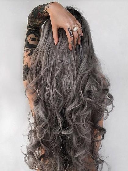 Startseite /Schwarz-nach-Grau Ombre Wellig Synthetische Lace Front Perücke-SNY036