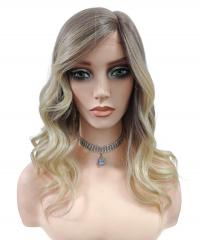 Startseite /Perücken/Perücken aus Synthetikhaar/Alltagsperücken – natürlich · bequem · alltagstauglich/ Elegante Ombre-Kunsthaarperücke – Aschbraun zu Blond mit weichen Wellen (Lace Front) DLP043