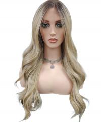 65 cm Lange Goldene Wellenperücke – Traumhaft fließende Synthetikhaare für glamourösen Look (Lace Front) DLP060