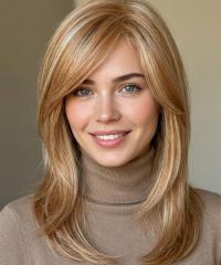 Startseite /Perücken/Perücken aus Synthetikhaar/Alltagsperücken/ Elegante Kunsthaarperücke in Kupferrot mit Pony (Basic Cap) DBK007