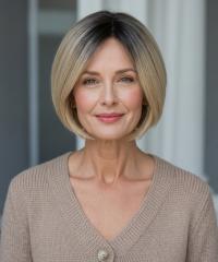Startseite /Perücken/Perücken aus Synthetikhaar/Alltagsperücken/ Bob Kunsthaarperücke mit braunen Wurzeln und Ombre-Übergang zu hellem Blond (Lace Front & Mono Top) DMT004