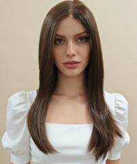 Startseite /Perücken/Perücken aus Synthetikhaar/Alltagsperücken/ Dunkelbraune glatte Kunsthaarperücke (Lace Front) DLP005