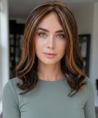 Startseite /Perücken/Perücken aus Synthetikhaar/Alltagsperücken/ Kunsthaarperücke – Dunkelbraun mit hellbraunen Highlights (Lace Front) DLP020