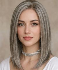 Startseite /Perücken/Perücken aus Synthetikhaar/Alltagsperücken/ Kunsthaarperücke – Weißblond mit hellbraunem Grund (Lace Front) DLP027