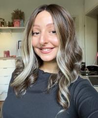 Kappenaufbau: Ohren-zu-Ohren Lace Front, T-Teil Lace Top. Klettverschlüsse am Nacken und 3 Haarkämme im Inneren der Kappe für zusätzliche Sicherheit.