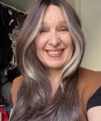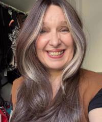 Startseite /Perücken/Synthetische Perücken/Alltagsperücken/ Superlange Perücke in Kastanienbraun mit zwei goldblonden Akzentsträhnen an der Stirn (Lace Part) DLP041