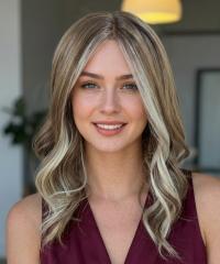 Startseite /Perücken/Perücken aus Synthetikhaar/Alltagsperücken/ Gewellte Kunsthaarperücke – Hellbraun mit Blond-Highlights (Lace Front) DLP042