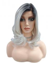 Startseite /Perücken/Synthetische Perücken/Alltagsperücken/ Linker Scheitel syntetische Perücke in Weißblond (Lace Part) DLP047