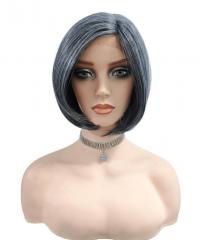 Bob-Schnitt synthetische Perücke in Schwarz-WeißGrau (Lace Part) DLP048