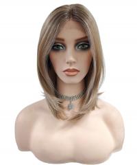Startseite /Perücken/Synthetische Perücken/Alltagsperücken/ Gewellte synthetische-Perücke im Weißblond/Hellhonigblond Mix mit zwei platinblonden Strähnen vorne (Lace Part) DLP052