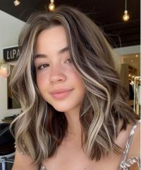 Startseite /Perücken/Echthaar Perücken/ Braune Echthaar Perücke mit Blond Highlights EH018