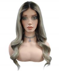 Startseite /Perücken/Echthaar Perücken/ Gewellte Echthaar Perücke in Graublond EH019