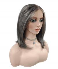 Startseite /Perücken/Echthaar Perücken/ Seidige Echthaar-Perücke in Dunkelbraungrau mit Highlights – Natürliches Styling EH024