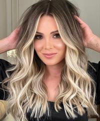 Startseite /Perücken/Echthaar Perücken/ Echthaarperücke in Smoky Brown mit platinblonden Highlights – natürlich & modern EH040