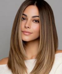 Startseite /Perücken/Echthaar Perücken/ Echthaar Perücke Damen Braun Mittel lang Natürliche Ombre Perücke mit Spitzen 100% Remy Echthaar EH049