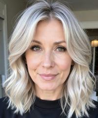Startseite /Perücken/Echthaar Perücken/ Echthaar Perücke Damen Ice Blonde Mittel lang Perücke 100% Remy Echthaar EH051