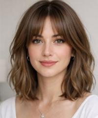 Startseite /Perücken/Echthaar Perücken/ Natürlich Braun Wellige Bob Perücke aus 100% Echthaar mit Pony EH056