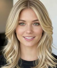 Premium 100% Remy Echthaar Perücke Damen Honey Blonde Balayage Schulterlang Gewellt EH050