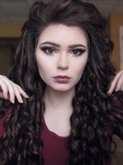 Dunkelbraun Hüftlänge Lockige Synthetische Lace Front Perücke-SNY031